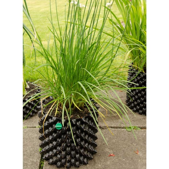 Plastic perforated collapsible pot for promoting vigorous root growth by air-pruning.