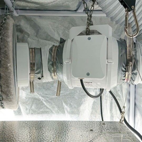 Mixes the air inside the tent, that uniforms the microclimate. Air blows on plants making them train to resist the “wind”, their structure strengthens. Easy attachable to the tube frame of the grow tent. Two speeds. Adjustable axis of the head. Power consumption 20 W.