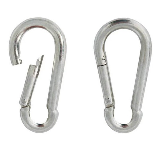 Steel carabiners for securing chains.