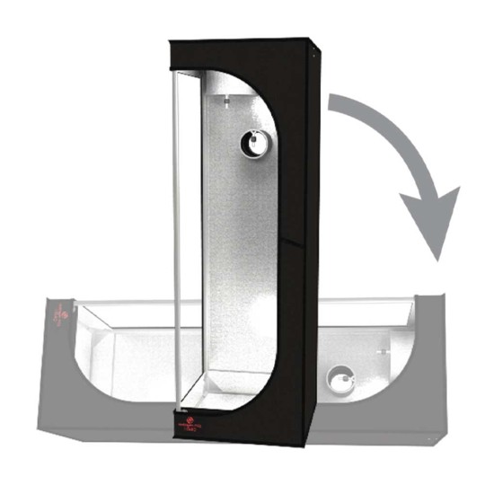 Essential high quality grow tent, turns vertical for high plants and horizontal for short ones.