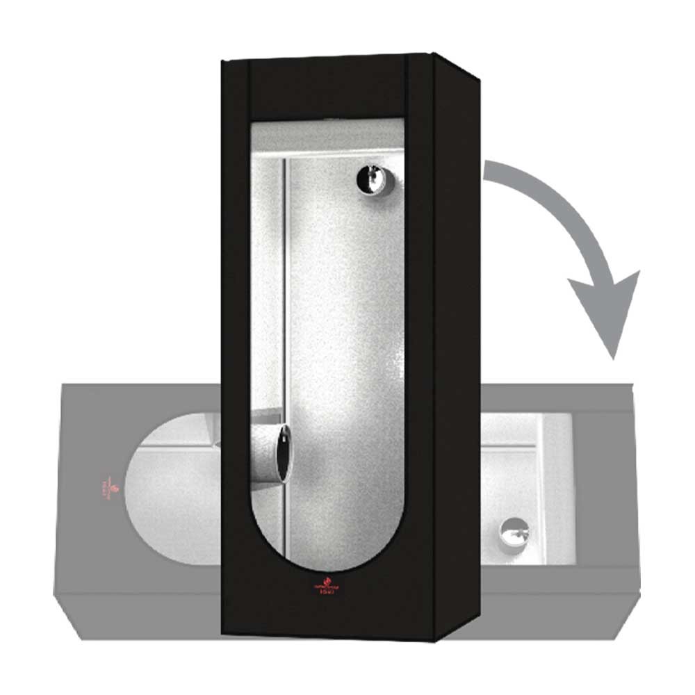Essential high quality grow tent, turns vertical for high plants and horizontal for short ones.