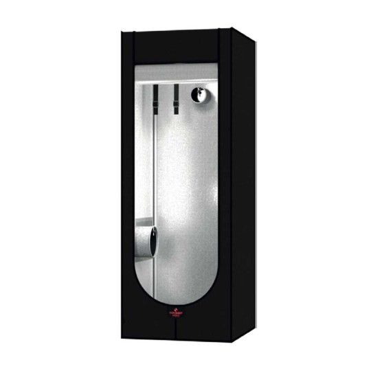 Hydro Shoot SMALL grow tents can operate in vertical (0.16m2) or horizontal (0.48m2) position. The rolling door on the front wall provides an easy access to the plants. It features two 150mm socks for the air intake/exhaust ports, 75mm cable sleeve, and 20x30cm window for passive intake. Two handling poles may take 20kg in total.