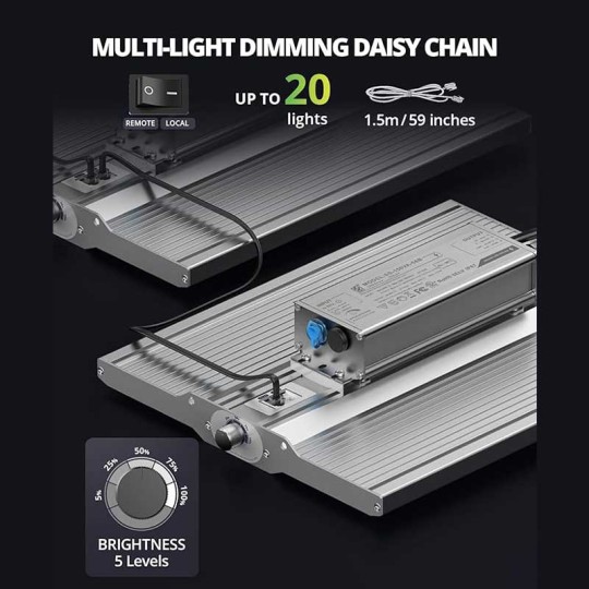 BLOGINĖS GRANDINĖS GRINDINĖS LEMBUTĖS: pritemdančios rafinuotos grandinės funkcija leidžia prijungti iki 20 vienetų XS1500 Pro auginimo lempučių, skirtų sėkloms pradėti, kad būtų užtikrintas vienodas pritemdymas, ypač naudingas komerciniam auginimui, horizontaliam ir vertikaliam ūkininkavimui, šiltnamių sodinimui ir hidroponikai ir kt. dimmer suteikia jums lankstumo reguliuoti šviesos lygius, kad augimas būtų tobulas visais etapais.