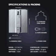 MAŽESNĖS VEIKLOS SĄNAUDOS AUGIMO ŠVIESTUVAS: sunaudoja tik 150 W, palyginti su tradiciniu 250 W HPS/MH! Puikiai tinka 90x90 cm vegetatyviniam ir 60x60 cm žydėjimui. 2 vnt XS1500 Pro šviestuvai tinka 120x60 cm auginimo palapinei. Nepamirškite tinkamai sureguliuoti ryškumo pagal savo augalų norimą lygį, kad būtų užtikrintas optimalus augimas.