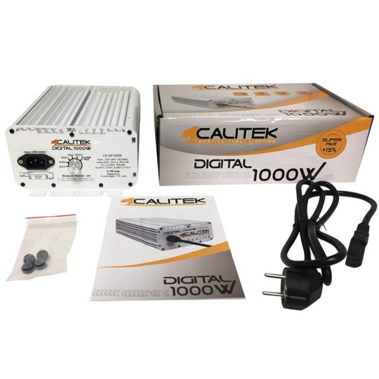 Электронный/цифровой балласт Calitek 1000 W совместим с ДВУХЦОКОЛЬНЫМИ (DE = Double Ended) лампами CMH, MH и HPS, а его высокая рабочая частота (100–160 kHz) позволяет лампе работать при постоянной мощности, продлевая срок её службы и повышая её световую эффективность. Он имеет высокий коэффициент мощности и высокую световую отдачу, а также низкий коэффициент гармонических искажений (THD).