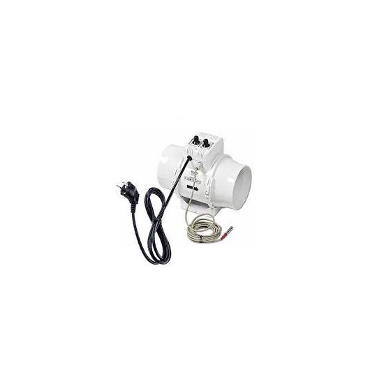 Fläkt med hastighetsregulator och elektronisk termostat, utrustad med en extern temperatursensor fast på 4 m kabel, + nätsladd
