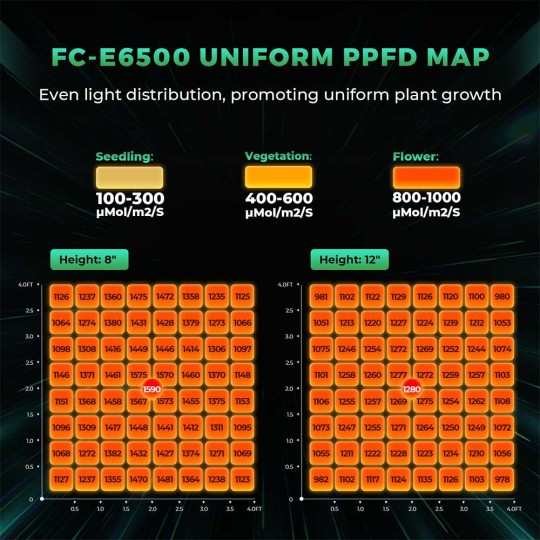 För att vara en barlampa ger FC-E LED mer enhetlig PPFD-fördelning och bättre värmeavledning, vilket garanterar en längre livslängd och stöd för flera odlingscykler. FC-E-serien utmärker sig som ett budgetvänligt alternativ, vilket ger utmärkt valuta för pengarna och gör den till det bästa valet för nybörjare.