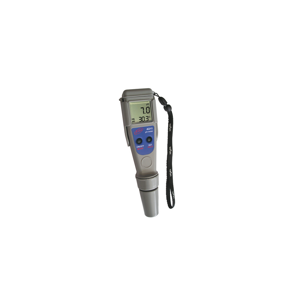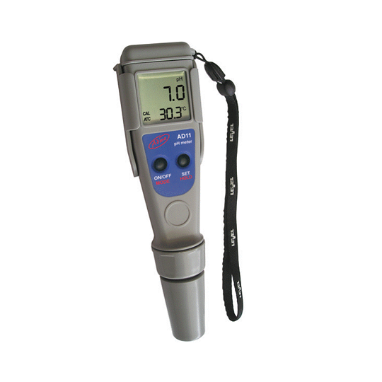 Mätaren kan kalibreras på en eller två punkter för pH med automatisk buffertigenkänning och mot fem memorerade buffertvärden. Mätningarna är mycket exakta med en unik stabilitetsindikator direkt på LCD-skärmen. Modellerna är också försedda med en symbol för låg batterinivå som varnar användaren när batterierna behöver bytas ut. AD11P pH-elektroden, som levereras med mätaren, är utbytbar och kan enkelt bytas ut av användaren.