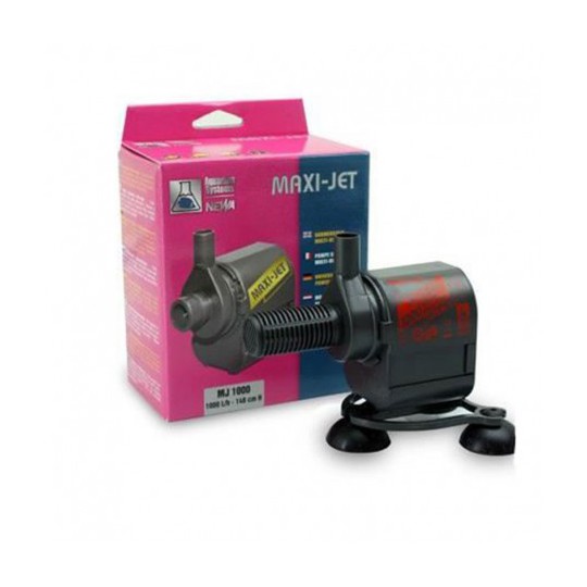MaxiJet 1000 Dränkbar pump för flera användningsområdenFärskvatten och havsvatten Kan användas i och utanför akvariet Munstycket kan justeras till 360° Tyst gång och minimal skötsel Självskyddande motor vid överhettning Gasväv för filtreringsskum ingår (skum säljs separat) Låg elförbrukning 1000 l/h H135 cm 12,5 W
